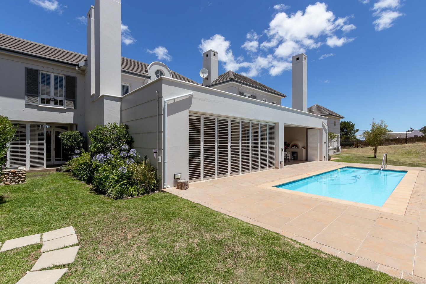 Indulge in the epitome of sophisticated living with this magnificent 5-bedroom, 5.5-bathroom home nestled within the prestigious Mount Rhodes Estate in Somerset West. Commanding breathtaking mountain and sea views, this residence offers an unparalleled lifestyle of tranquillity and elegance.Step inside and discover a chef's dream kitchen, featuring top-of-the-line appliances, ample counter space, and a central island perfect for culinary creations and casual gatherings. Multiple living areas flow seamlessly, providing abundant space for relaxation and entertainment. Enjoy cosy evenings by the fireplace or host grand gatherings with ease. Five generously sized bedrooms, each with its en-suite bathroom, offer private sanctuaries for rest and rejuvenation. Wake up to stunning views and enjoy the ultimate comfort.Step out onto the main expansive patio and immerse yourself in the beauty of the surrounding landscape. The sparkling pool and manicured gardens provide an idyllic setting for outdoor living and entertaining. Discover other charming patios discretely placed around the home for private relaxation.Descend to the lower level and be captivated by a lavishly appointed entertainment haven. This versatile space, reminiscent of a grand castle hall with its high, arched ceilings and warm, ambient lighting, is perfect for both lively social gatherings and intimate retreats. A handcrafted wooden bar and inviting fireplace add a touch of sophistication and warmth. Seamlessly transition from indoor comfort to outdoor serenity as this area opens onto a charming alfresco courtyard.Mount Rhodes Estate offers peace of mind with controlled access and a tranquil environment. Enjoy leisurely walks, breathtaking scenery, and a sense of community.Prime Location:Situated close to the heart of the Cape Winelands, with easy access to Somerset West, Stellenbosch, and Cape Town International Airport. Explore the nearby Whale Coast, indulge in world-class wineries, and enjoy a variety of outdoor activities.Exceptional Features:This remarkable home is further enhanced by a host of exceptional features, including:Three fireplaces for cosy warmthFour garages for secure parkingHeated pool for year-round enjoymentSeparate scullery and laundry areas for added convenienceTwo 5000lt water tanks for sustainable livingBorehole water for self-sufficiency50KVA generator for uninterrupted power supplyPerimeter fencing and security gates for enhanced privacy and safetyAutomated security blinds and shutters for peace of mindA Rare Opportunity:Discerning investors and buyers seeking a luxurious, secure, and self-sufficient lifestyle need look no further. This exceptional property offers an unparalleled opportunity to own a piece of paradise in the prestigious Mount Rhodes Estate.