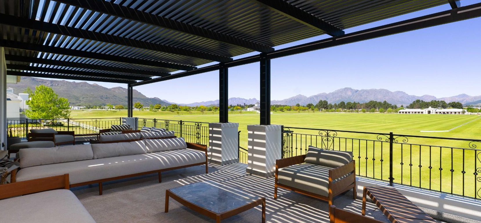 Perfectly positioned in one of the estate’s most sought-after locations, this home enjoys an uninterrupted outlook over the iconic main polo field, framed by the majestic Simonsberg, Wemmershoek, and Franschhoek mountains.