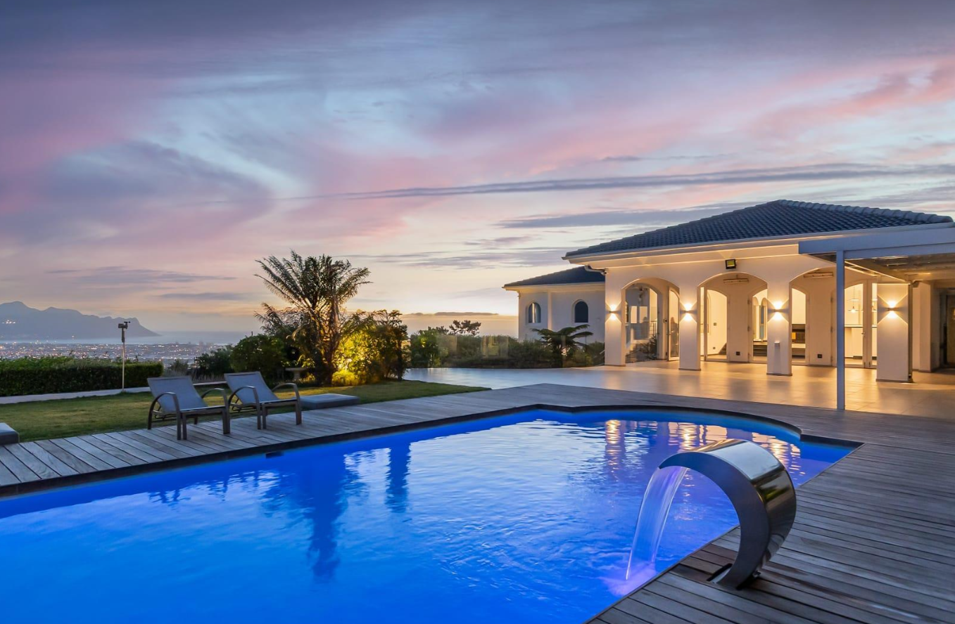 JOINT MANDATE: Set in an exclusive upmarket location, this exceptional residence commands spectacular, uninterrupted views of both the sea and surrounding mountains. Positioned on a large erf with a beautifully landscaped and immaculately maintained garden, the home blends refined architectural design with world-class finishes to create a residence of rare quality.